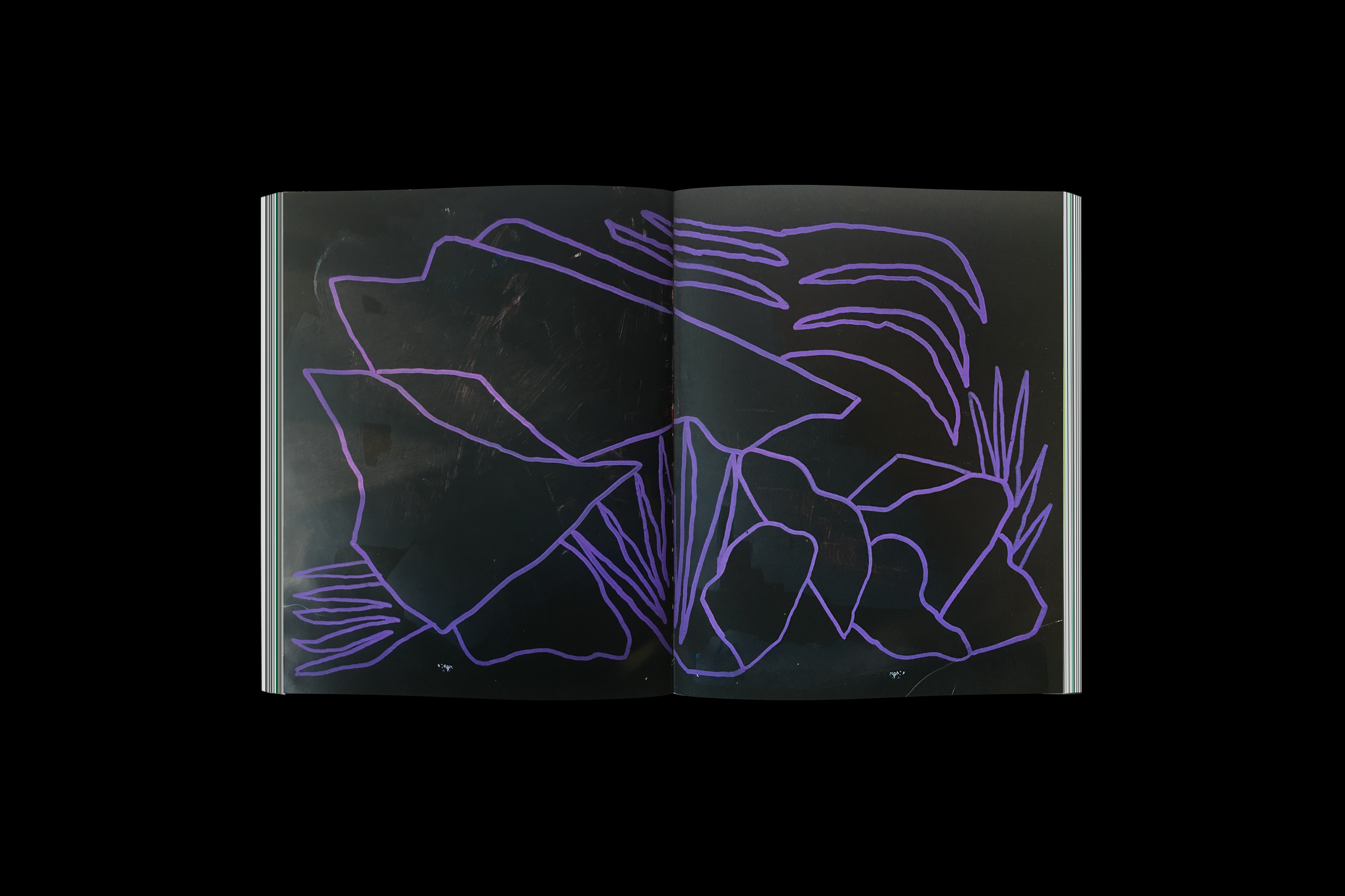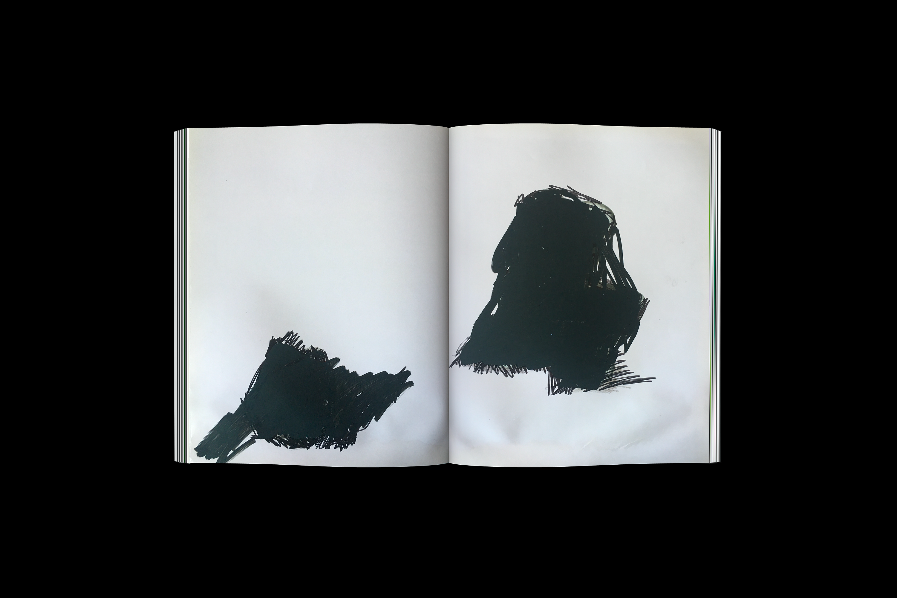 inturas e desenhos utilizando como base um livro de arte onde o conteúdo original é alterado através de sobreposição de novas imagens criadas com canetas, líquido corretivo e spray.